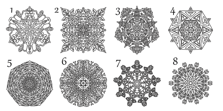 Enjoy a relaxing art experience with a collection of 20 unique mandalas that you can color digitally on your computer or print to color with traditional media like markers and crayons.