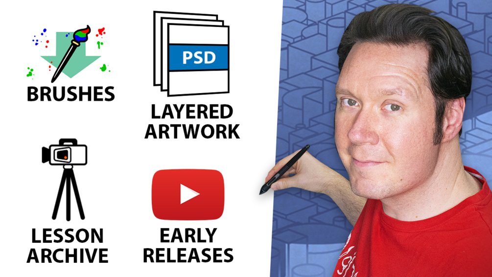 Get exclusive access to members-only digital art resources, videos, and brushes for Rebelle, Krita, Corel Painter, Photoshop and more.