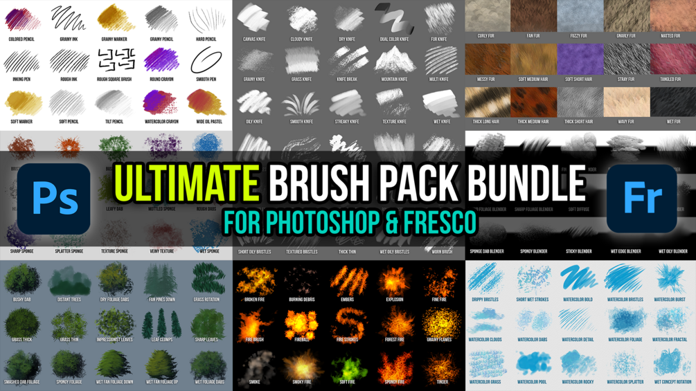 Adobe Photoshop & Fresco Brush Pack - Ultimate Bundle (135 Brushes)