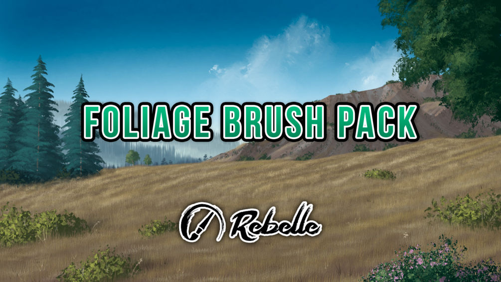 A set of custom Foliage brushes for Rebelle. These brushes can create a variety of painterly-looking leaves, grass and trees.